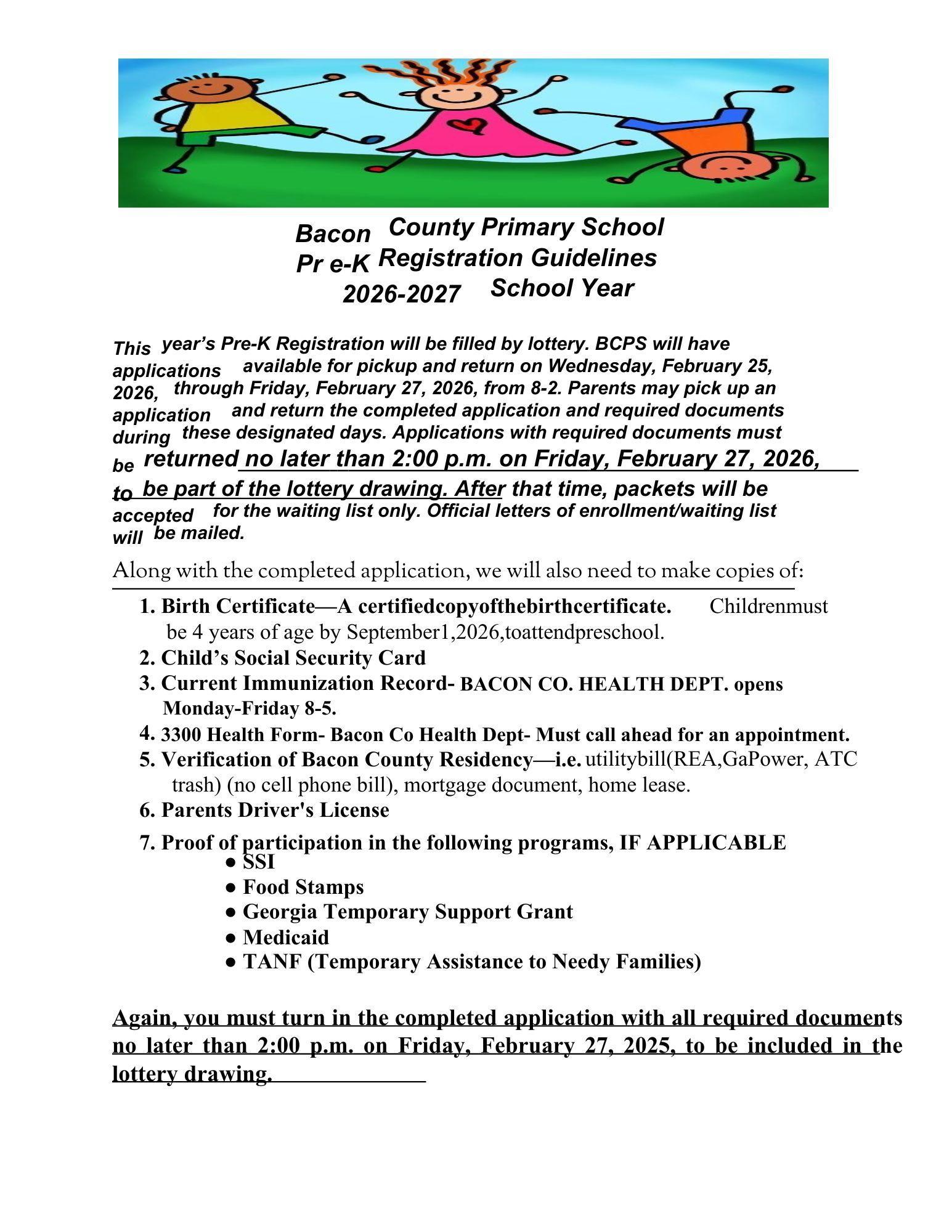 PreK Registration for 2026-2027 School Year
